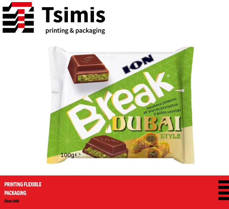 Η συνεργασία μας με την ΙΟΝ για τη δημιουργία της premium σοκολάτας Dubai έθεσε τον πήχη εξαιρετικά ψηλά: ζητούμενο ήταν να αποτυπωθεί η πολυτέλεια και η δυναμική του brand μέσω της συσκευασίας με έμφαση στην εκτύπωση.